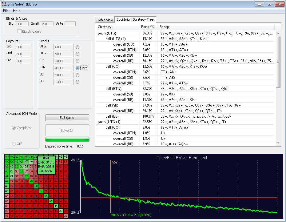SnG Solver represents the absolute state-of-the-art in poker strategy analysis and can help you get the edge you're looking for.